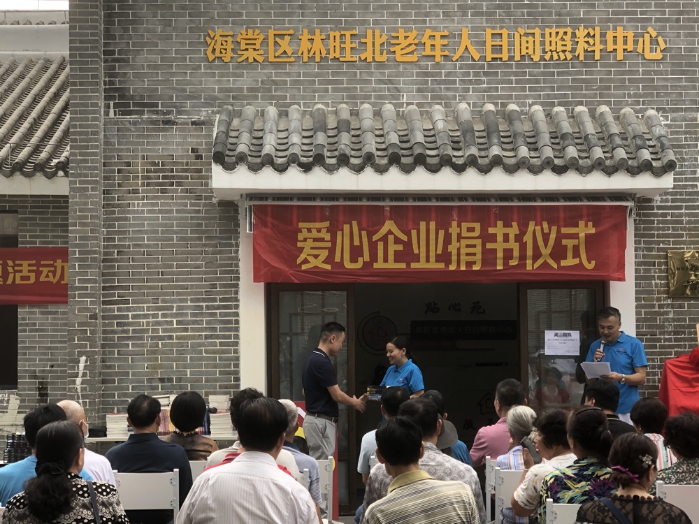 半岛在线关爱老人,热心公益,为为海棠区林旺北老年人日间照料中心捐赠书籍。